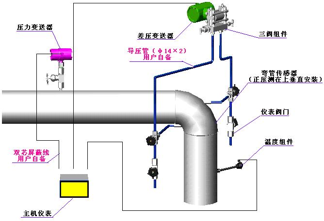 2. 測量蒸汽彎管流量計系統(tǒng)構(gòu)成