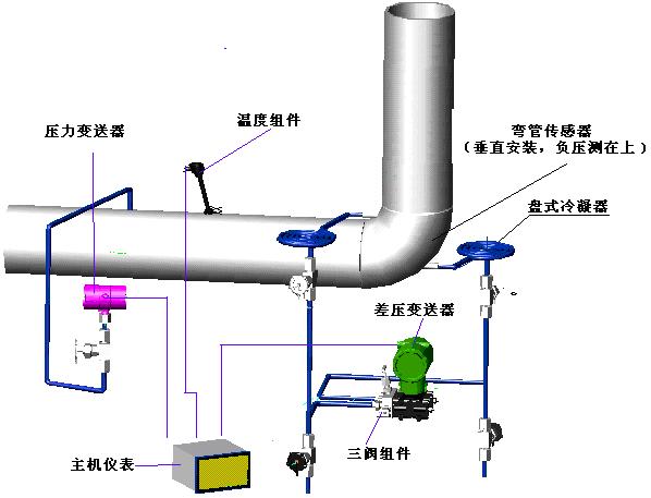 1. 測量煤氣、空氣等彎管流量計系統(tǒng)構(gòu)成