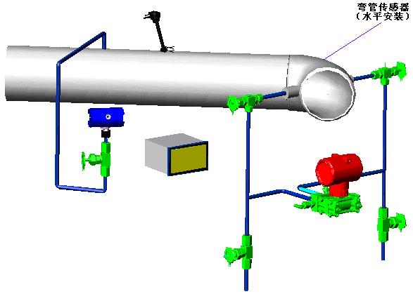 彎管流量計的一次傳感元件——彎管傳感器依安裝管線上的不同分為如下三種: