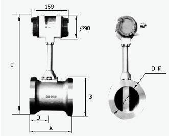 為了確保儀表正常、準(zhǔn)確運(yùn)行,渦街流量計(jì)安裝點(diǎn)的上下游有一定的直管道,以調(diào)整流場(chǎng),如圖所示。